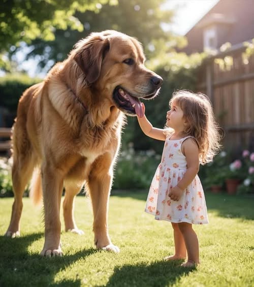 Пес замер. Его рычание стихло. Он лишь глубже вдохнул, ощущая запах детских волос, запах невинности и абсолютного доверия. Его огромный хвост медленно, почти неуверенно, качнулся из стороны в сторону один раз, потом еще. Это было не размашистое виляние, а скорее, тихое, вопросительное движение. Казалось, в его глазах, полных суровой преданности, промелькнуло понимание. Понимание хрупкости этого маленького существа.