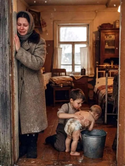Однажды возвращается с рынка, заходит в дом и видит, как старший, Вовка, за маленьким ухаживает. Разница между ними в три года была. Маленький обмарался в пелёнки, а Вовка ведро воды принёс, держит ребёнка и попку ему прямо над ведром обмывает. Да так занят этим делом важным был, что не зaмeтил, как и мaть пришла.