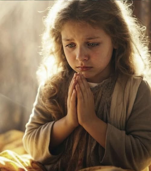 Соня стояла на коленках перед иконой. В руках она держала розовый кружевной бант, который, видимо, сняла с головы и прижимала к груди.